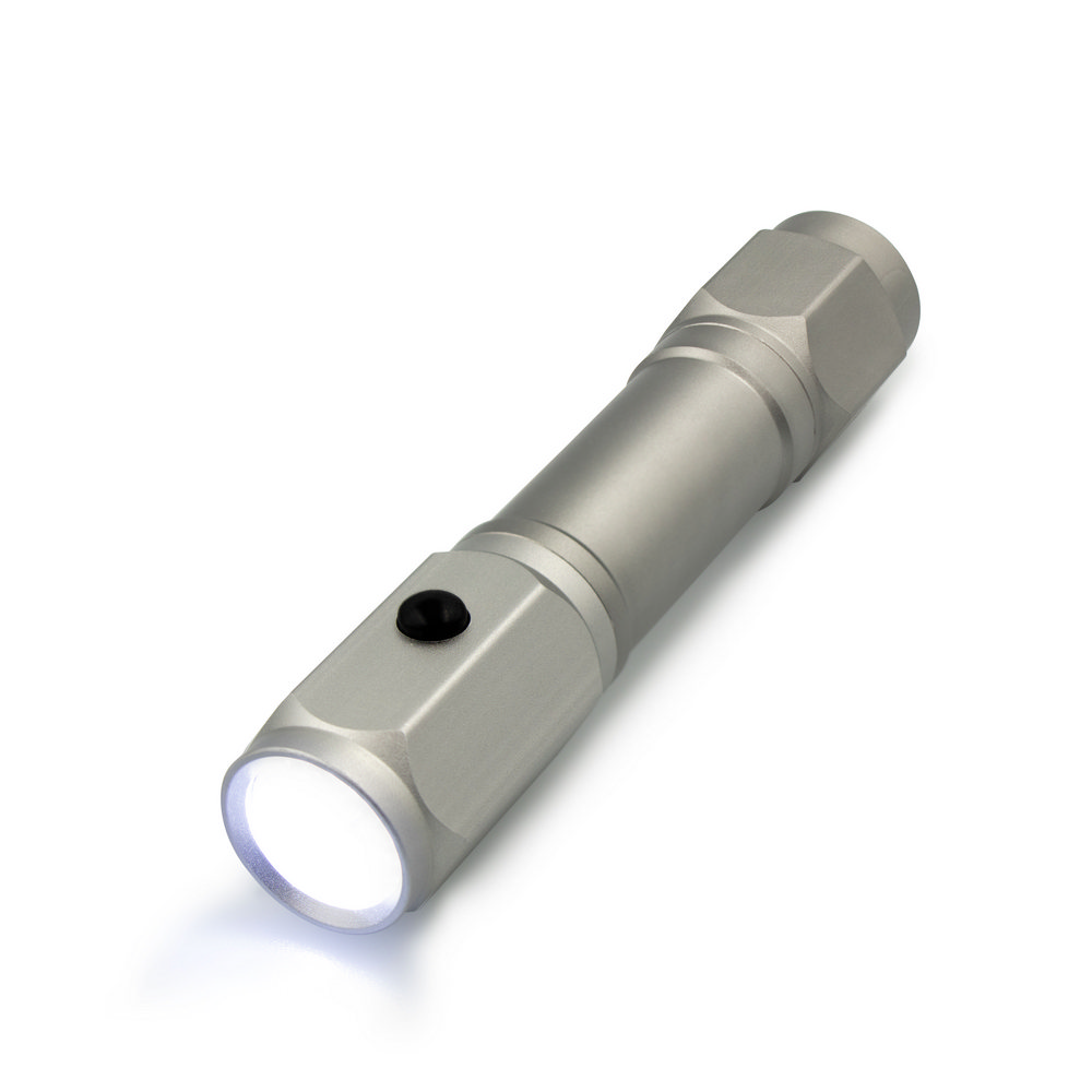 Die Notfalltaschenlampe ist der ideale Imageträger für Ihr Unternehmen! Mit einem kompakten Design (Ø3,3 x 15,5 cm) und einem robusten Aluminium-Gehäuse ist sie nicht nur funktional, sondern auch langlebig. Diese innovative Lampe liefert beeindruckende 60 Lumen Licht, bietet mit einem Sicherheitshammer und einem Sicherheitsmesser echten Mehrwert und erleichtert den Alltag Ihrer Kunden.