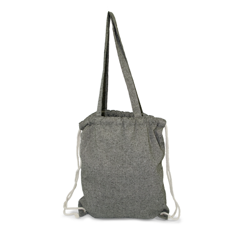 Erleben Sie den perfekten Imageträger mit unserem recycelten Baumwollbeutel 2 in 1. Dieser vielseitige Werbeartikel überzeugt durch seine Funktionalität: Als Rucksack oder Tragetasche genutzt, eignet er sich ideal für Einkäufe oder das Fitnessstudio. Mit einer ansprechenden Größe von 37 x 42 cm und einer robusten Verarbeitung aus 100% recycelter Baumwolle (140 g/m²) bietet er nicht nur hohen Tragekomfort, sondern auch ein umweltbewusstes Statement.