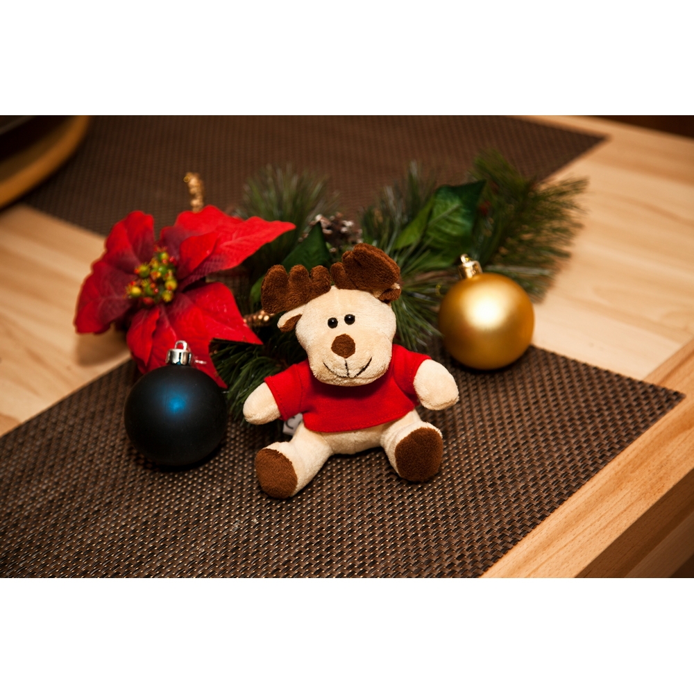 Entdecken Sie das Rentier mit T-Shirt – Ihr idealer Imageträger! Mit einer Größe von 10,5 cm und aus hochwertigem Baumwoll-Plüsch gefertigt, bringt dieses charmante Werbemittel Freude und Emotion in jeden Alltag. Das liebevoll gestaltete Rentier trägt ein rotes T-Shirt, das individuell bedruckt werden kann, und bleibt somit unwiderstehlich im Gedächtnis Ihrer Kunden.