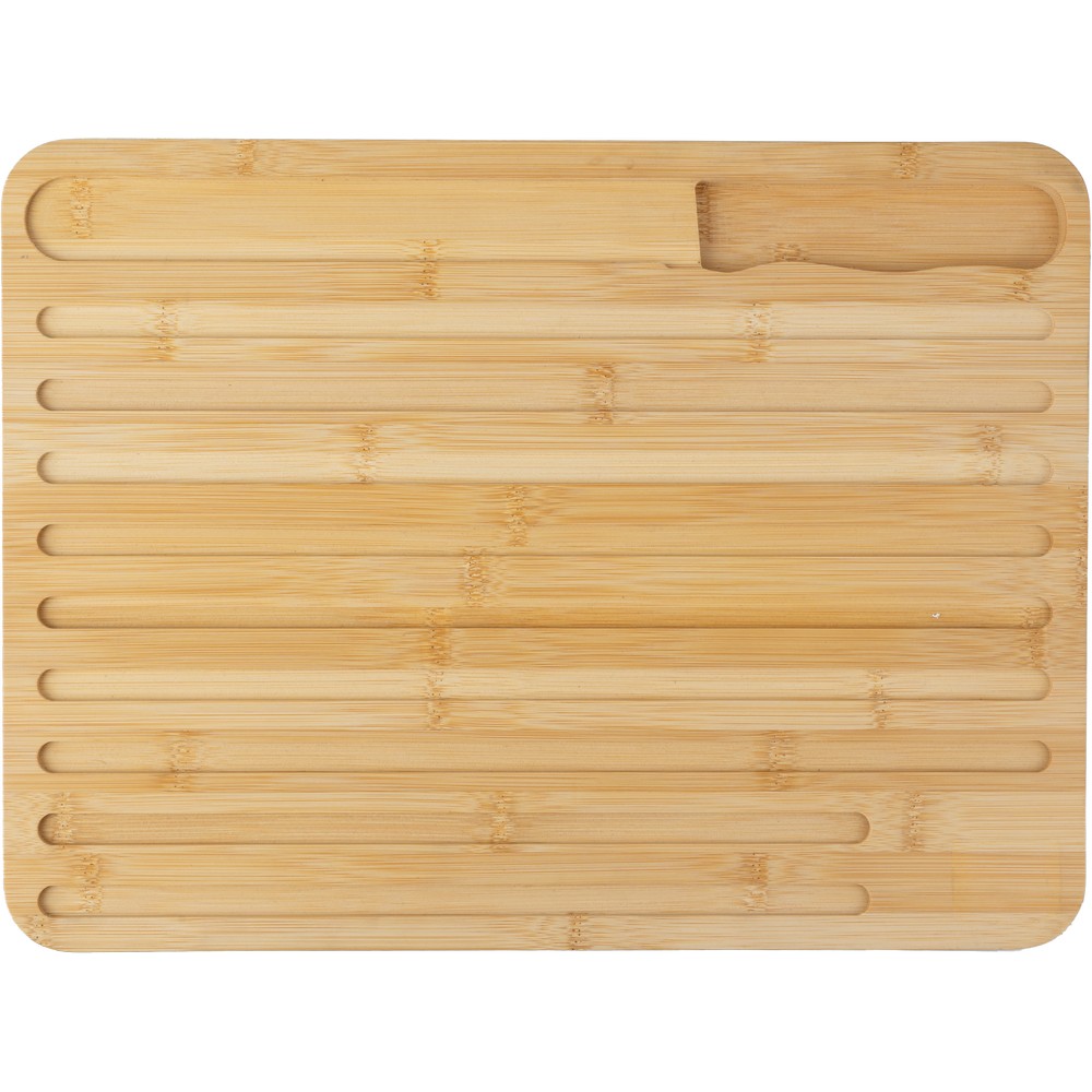 Entdecken Sie das exklusive Schneidebrett aus hochwertigem Bambus – der perfekte Imageträger für Ihre Marke. Mit seinen eleganten Maßen von 40 x 30 cm und einem Gewicht von nur 1585 g vereint es Funktionalität und Stil in jeder Küche. Das zugrunde liegende nachhaltige Material sowie die Möglichkeit zur individuellen Lasergravur sorgen dafür, dass Ihr Logo nicht nur sichtbar, sondern auch gefühlvoll in den Alltag des Beschenkten integriert wird. Der mitgelieferte Edelstahlmesser bietet zudem eine praktische Anwendung, die das Kochen zum Vergnügen macht.