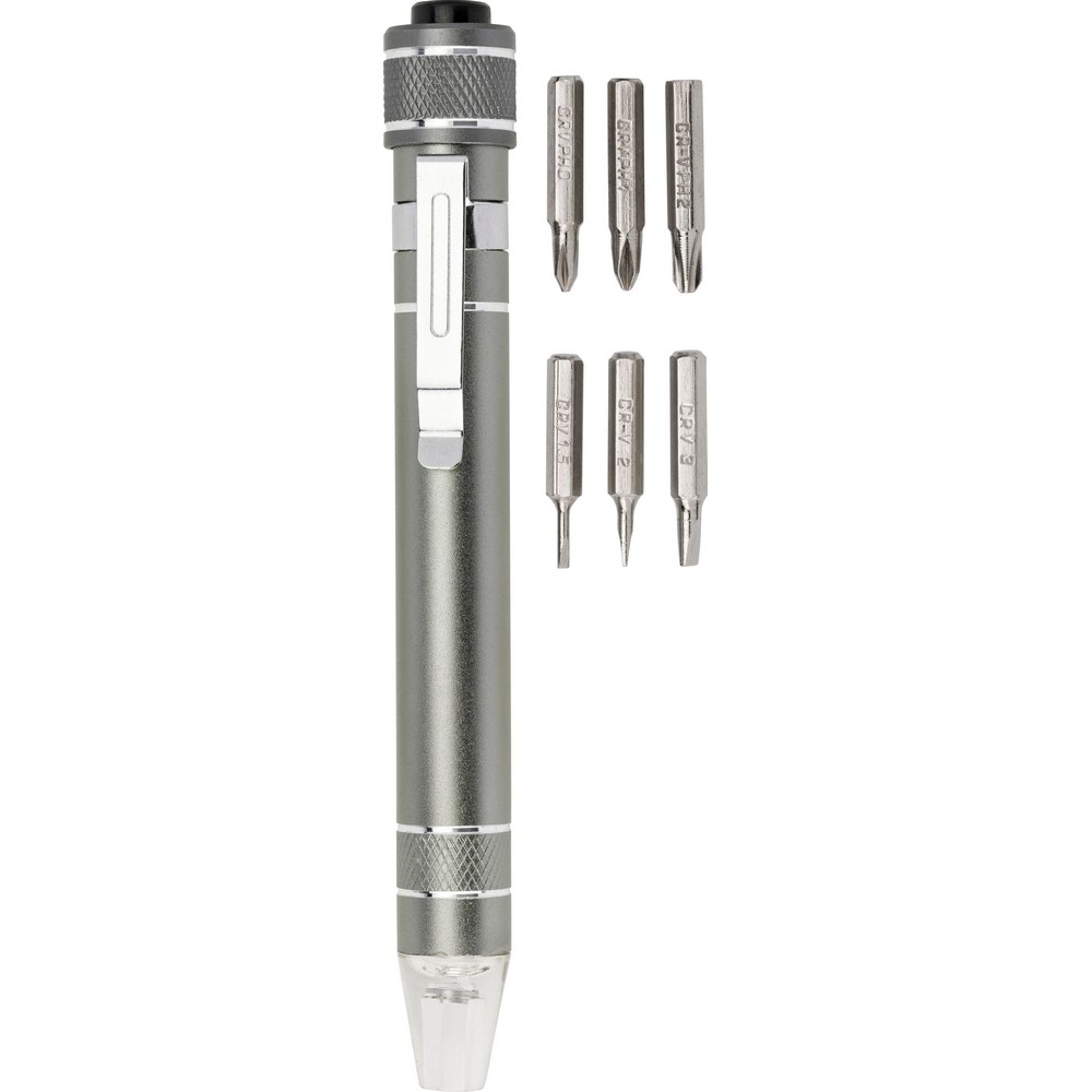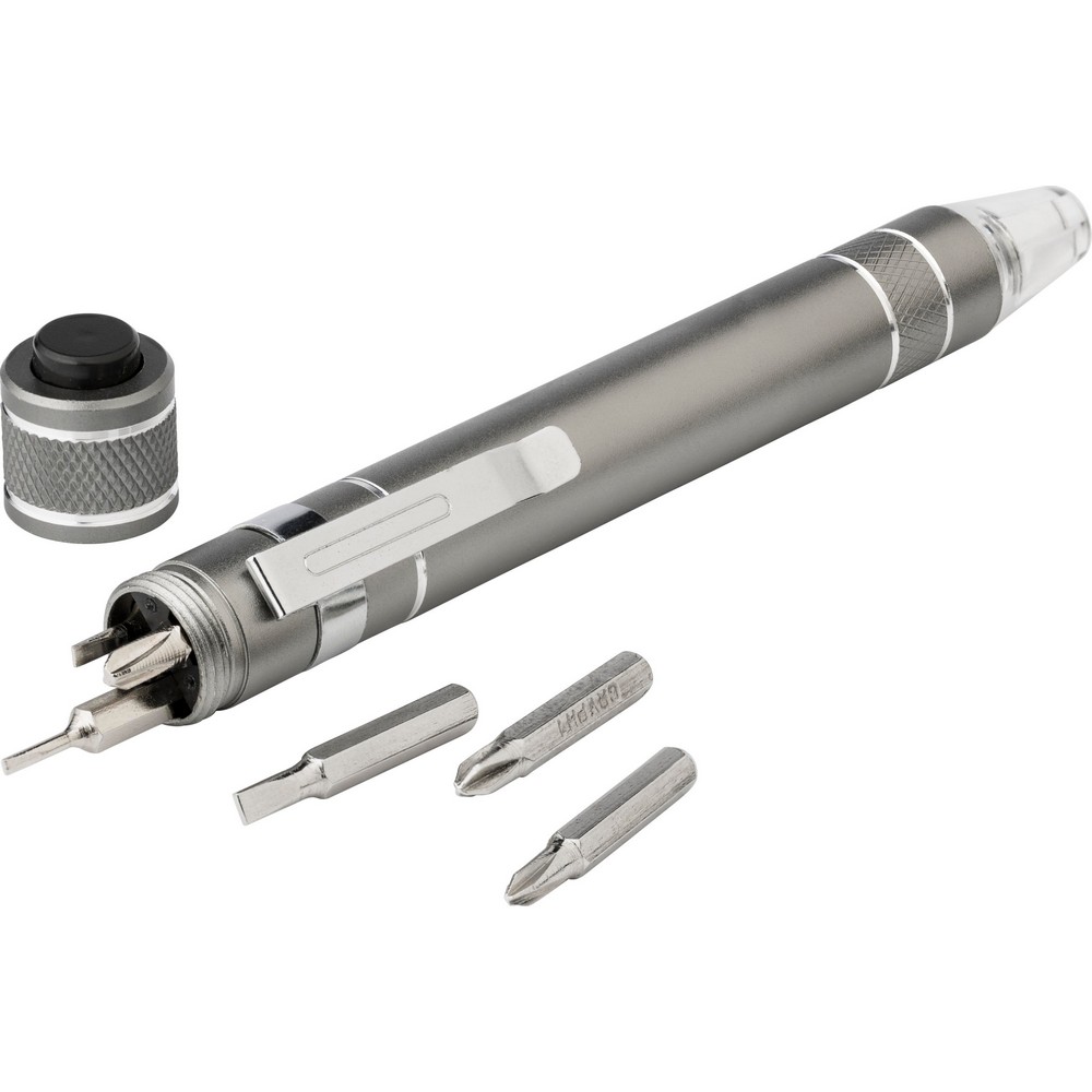 Entdecken Sie den perfekten Imageträger für Ihre Marke: Unser Schraubendreher mit 6 Bit und integrierter LED-Lampe ist nicht nur ein praktisches Werkzeug, sondern auch ein stilvolles Accessoire, das Ihre Kunden begeistert. Mit einem kompakten Design von Ø1,6 x 13,1 cm und einem Gewicht von nur 44 g passt er mühelos in jede Werkzeugkiste oder Tasche. Die hochwertige Metallverarbeitung sorgt für Langlebigkeit, während die Möglichkeit zur individuellen Lasergravur oder zum Tampondruck Ihre Markenbotschaft ins Rampenlicht stellt.