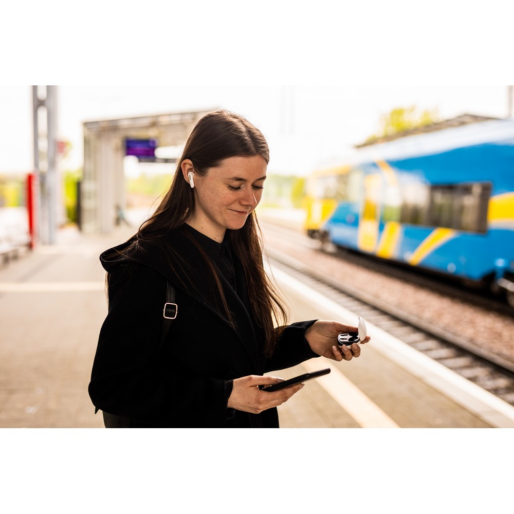 Jeder Kopfhörer bietet eine Spielzeit von ca. 2 Stunden und wird sicher im stilvollen Ladegerät mit digitalem Display aufbewahrt. Mit einer Reichweite von bis zu 10 m haben Ihre Kunden die Freiheit, Musik zu genießen und Anrufe zu tätigen, ohne abgelenkt zu werden.
